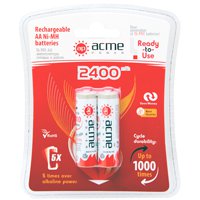 В 5 раз более энергоемкие, чем алкалиновые элементы, до 24 месяцев надежного хранения энергии с минимальной потерей заряда, до 1000 циклов заряда/разрядки, емкость до 2400 мАч - вот основные преимущества новых элементов питания AcmePower АА-2400 "Ready-to-Use" и они всегда "Готовы-к-работе".