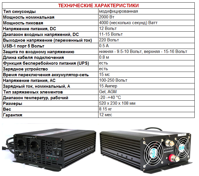 И преобразователь напряжения с функцией ИБП AcmePower AP UPS-2000 с входным напряжением 12В и мощностью 2000 Ватт.